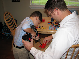 Then Daddy came home, which was the highlight of the day! My boys just adore their Daddy and can't get enough of him! When he goes out of town, everyday the boys ask me, "Mommy, when is Daddy coming home?" It breaks my heart, but Dan is working really hard and really making a good name for himself in the company. We are all VERY proud of him!